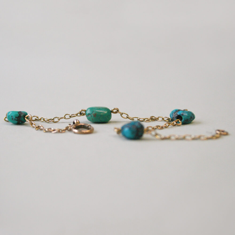 Vintage 9ct gold turquoise station bracelet, c.1940s