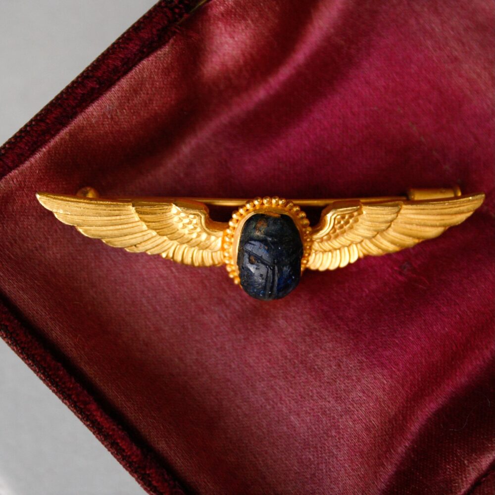 Egyptian Revival 22ct gold hardstone scarab beetle brooch