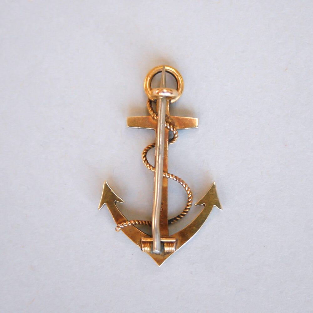 Victorian 15ct gold turquoise and pearl anchor brooch, c.1880s