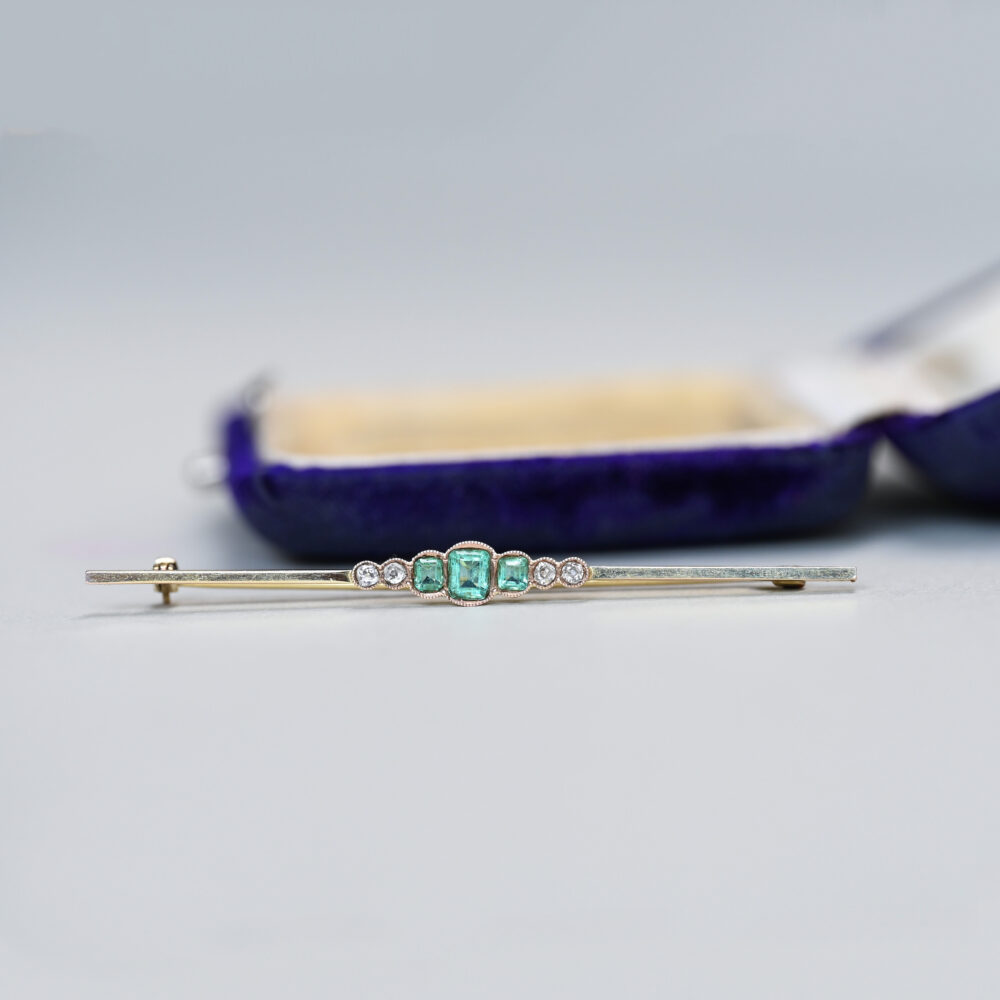 Emerald and diamond bar brooch pin