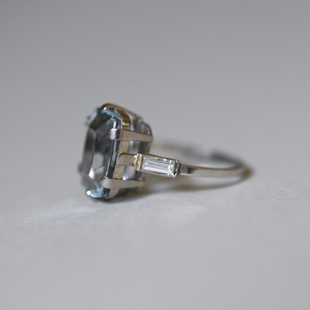 Art Deco 18ct white gold topaz and baguette cut diamond ring, c.1930s