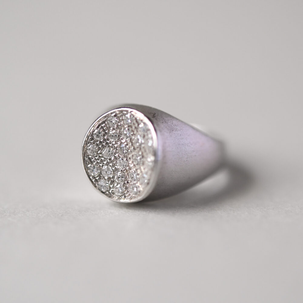 Contemporary 18ct white gold diamond concave signet ring