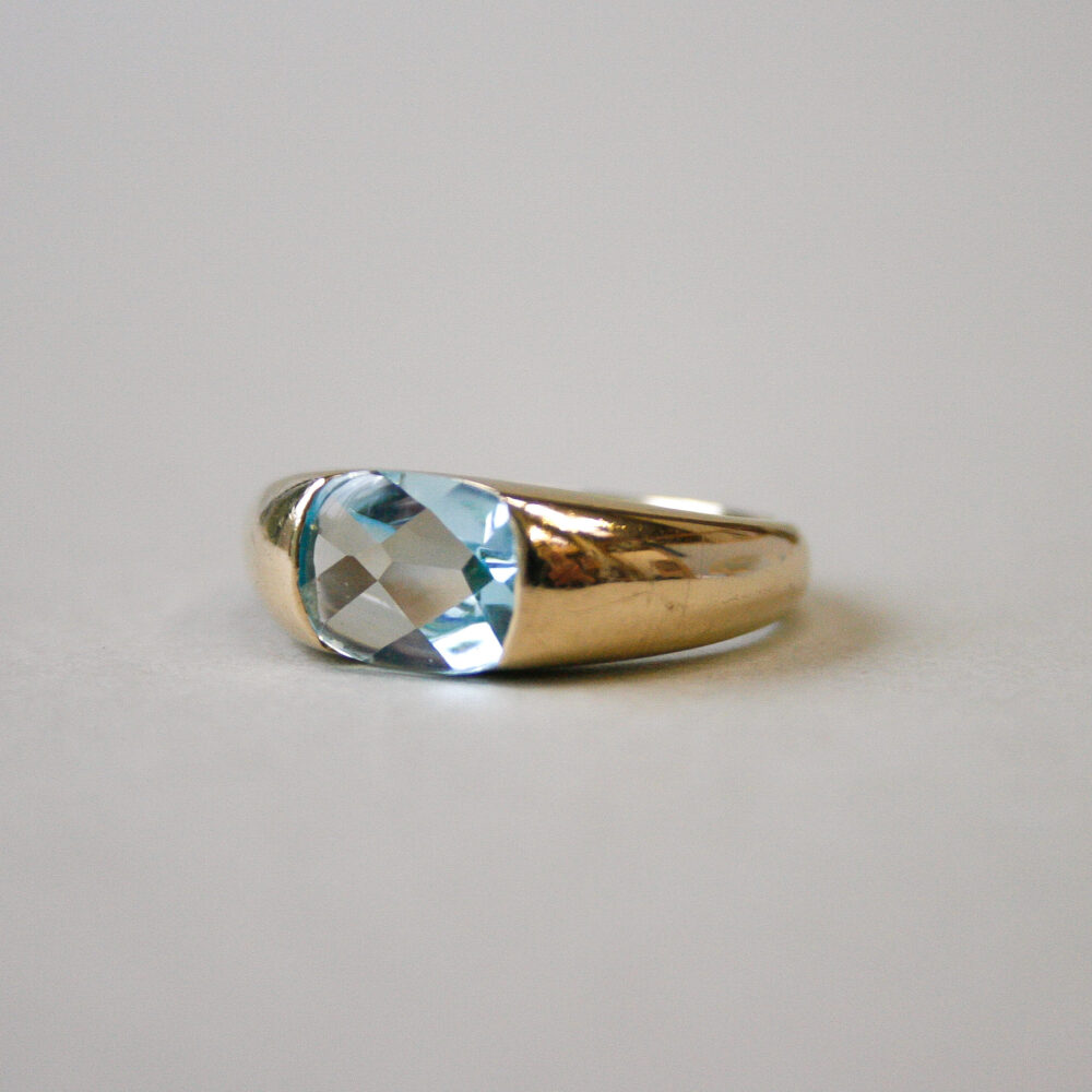 Contemporary 9ct gold facetted topaz band ring