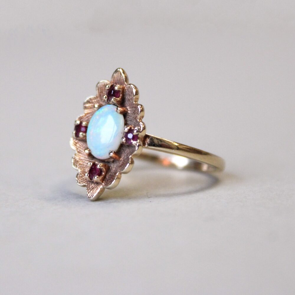 Vintage 9ct gold opal and ruby ring