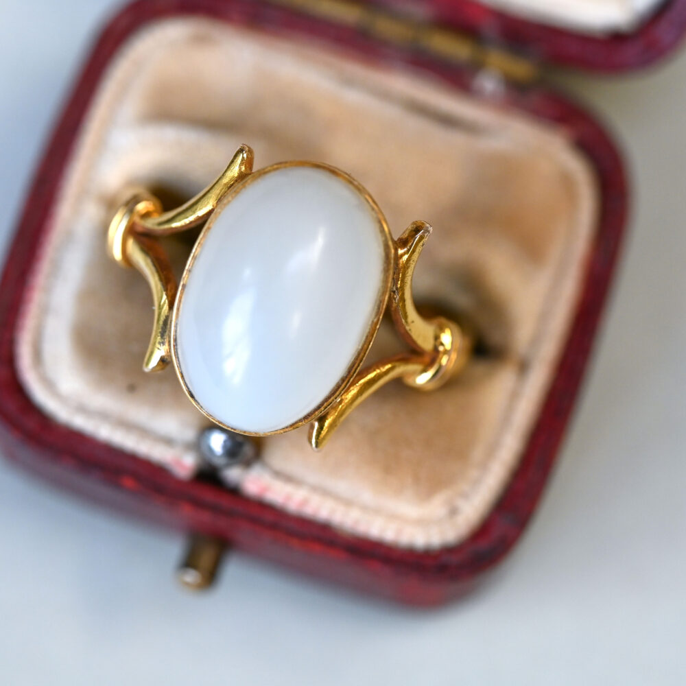 Substantial 18ct gold white chalcedony cabochon ring, c.1940s