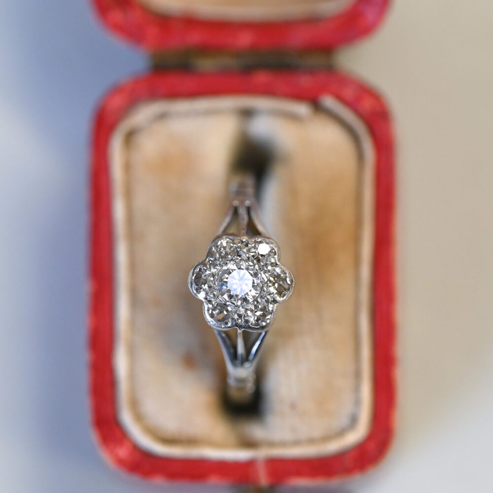 Edwardian 18ct gold and platinum diamond daisy cluster ring