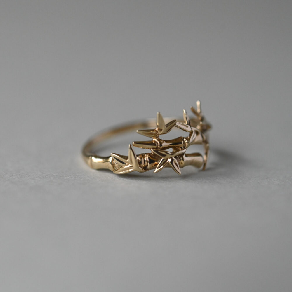 Contemporary 9ct gold bamboo leaf ring