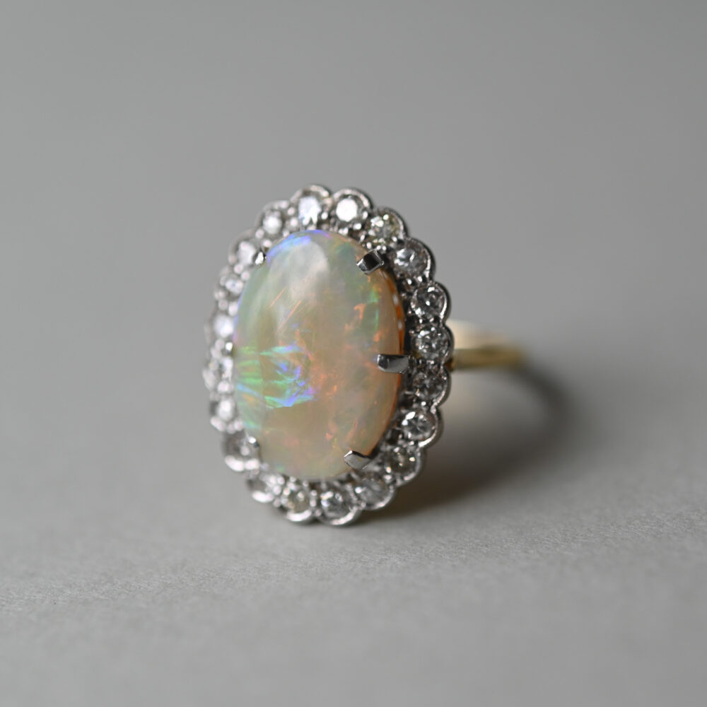 Classic 18ct gold opal and diamond cluster ring