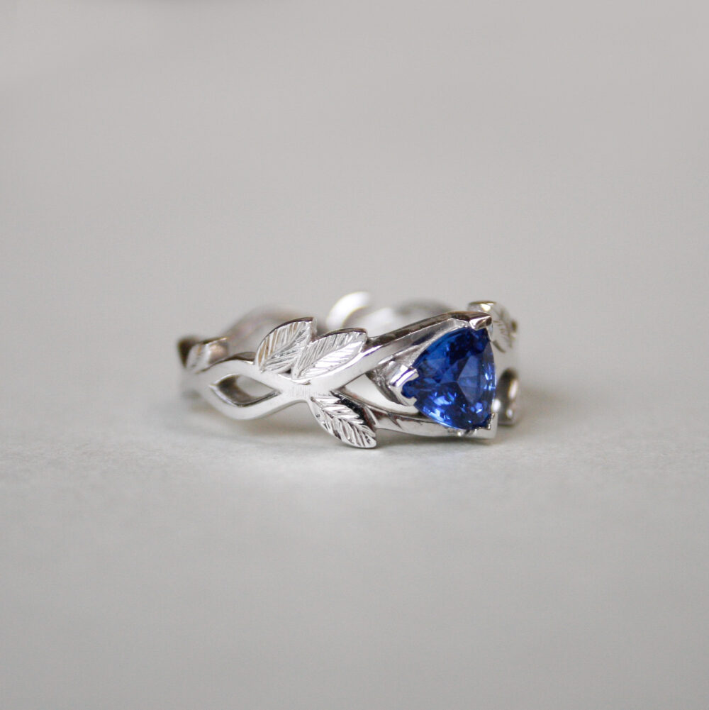 Aesthetic 14ct white gold iolite leaf ring