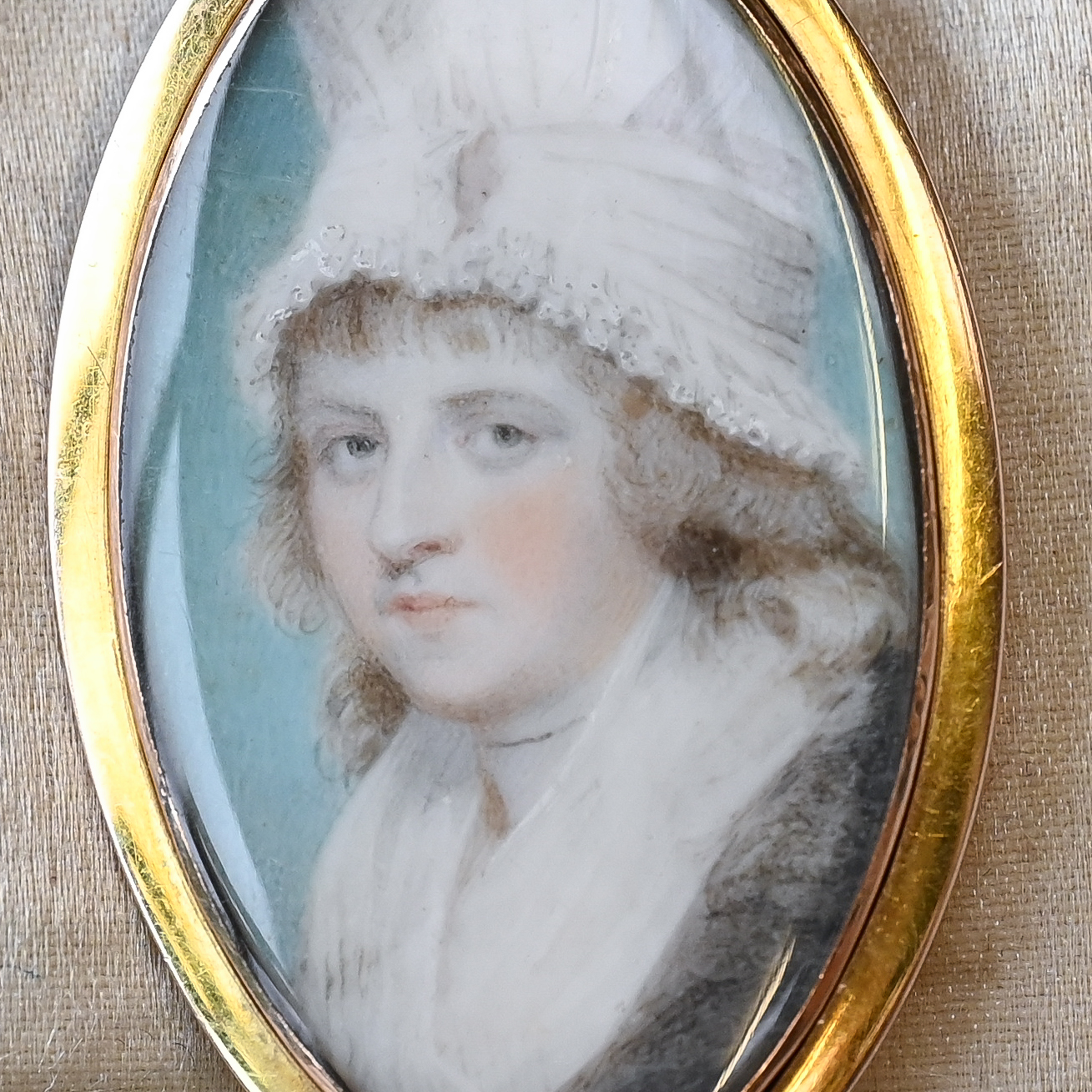 Georgian 9ct gold miniature portrait painting pendant brooch, c.1780s