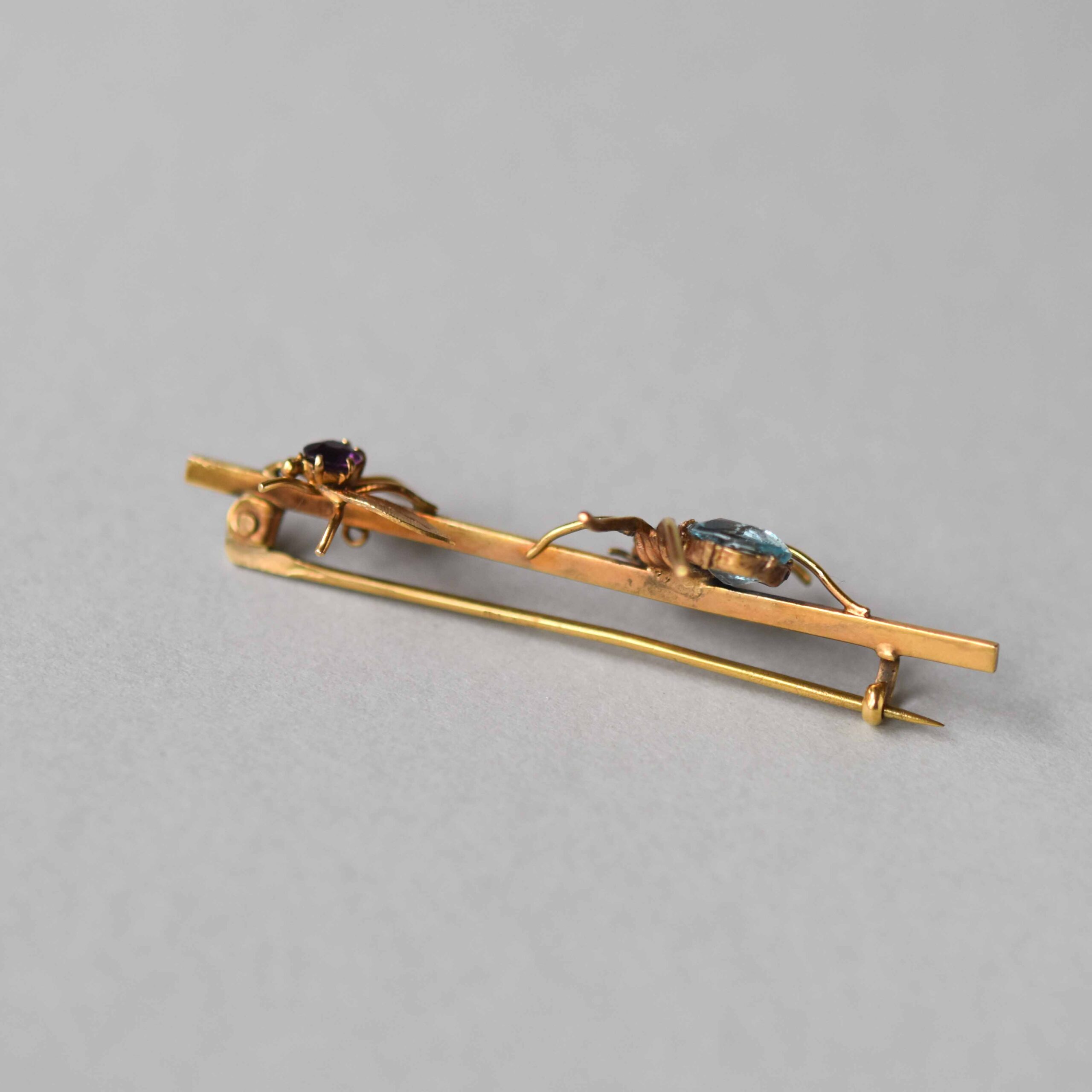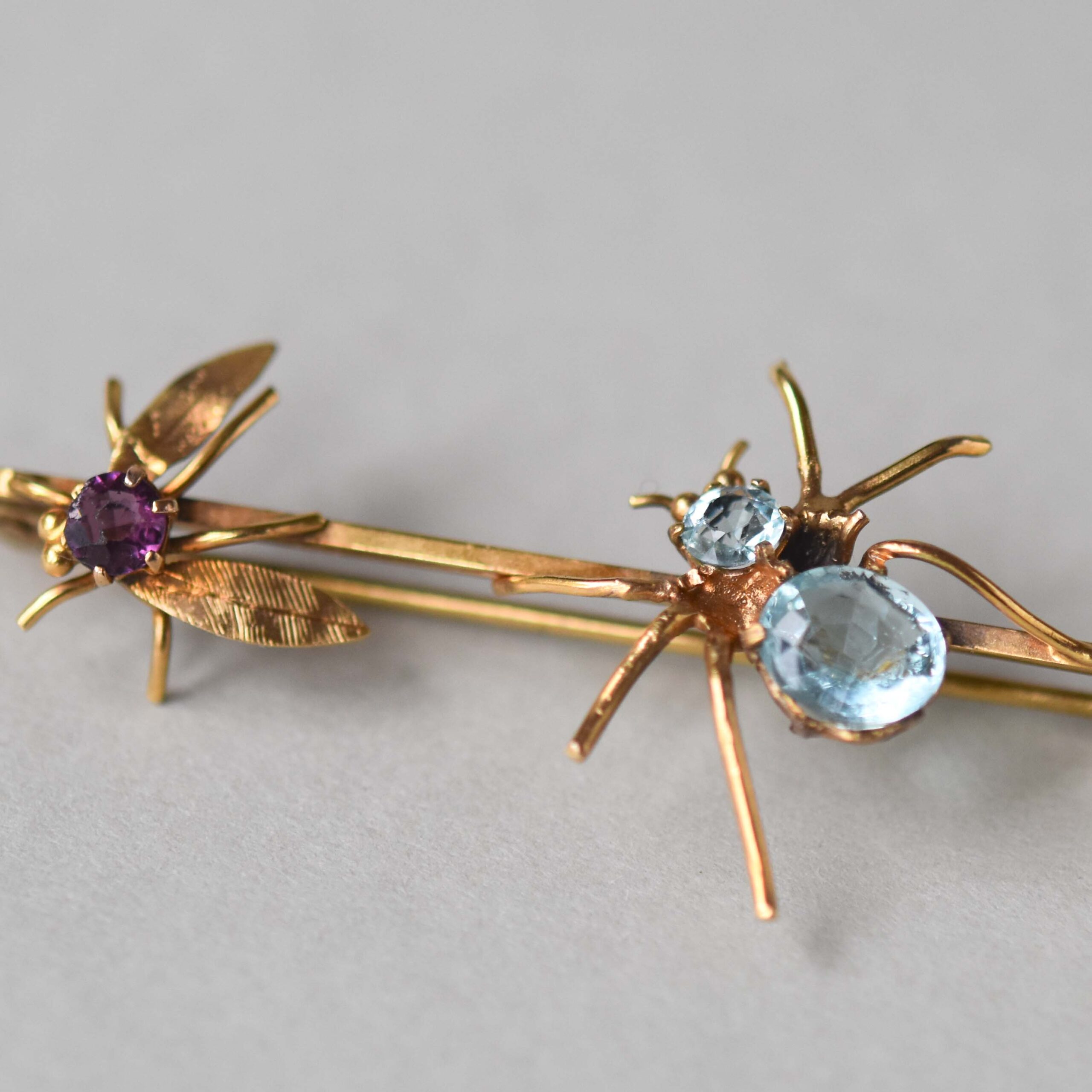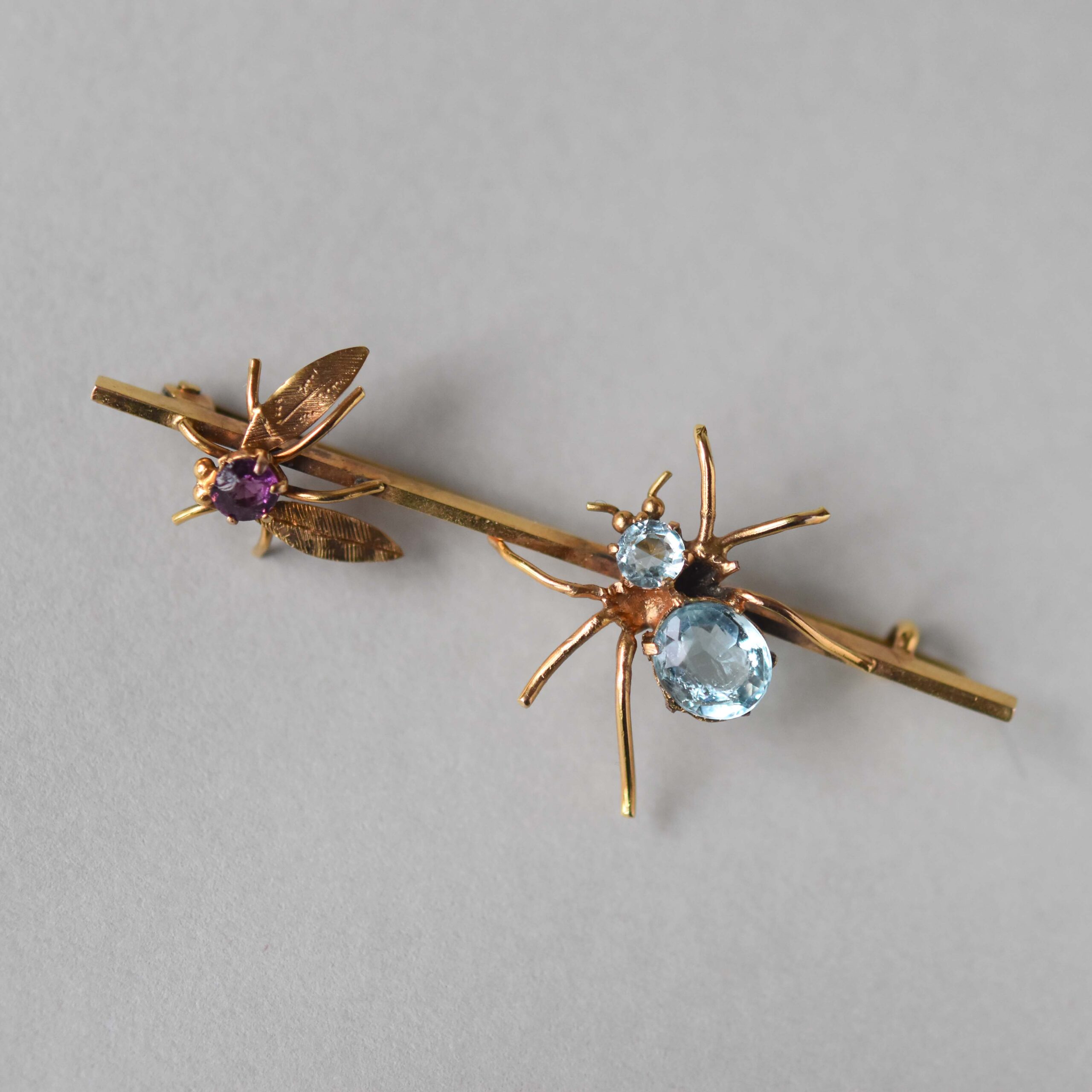 Edwardian 9ct gold spider and fly paste brooch extender
