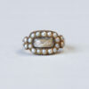 Dating to the first quarter of the 19th century, this beautifully made piece fits neatly into the Georgian era. Designed as a marmalde hue foil backed paste and pearl halo, with a cute button shaped setting. The paste measures 9 mm x 9 mm. Ideal to wear on a piece of velvet or fine lace as a threader pendant. Could also be worn as an extender. Please note the box shown is for demostration purposes. A beautiful example of antique English jewellery.