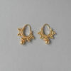 A cutie and aesthetic pair of 14ct gold earrings, each designed as an engraved circular sunburst. With post and lever back fittings. Please note the box shown is for demonstration purposes. A lovely pair of bespoke made earrings.