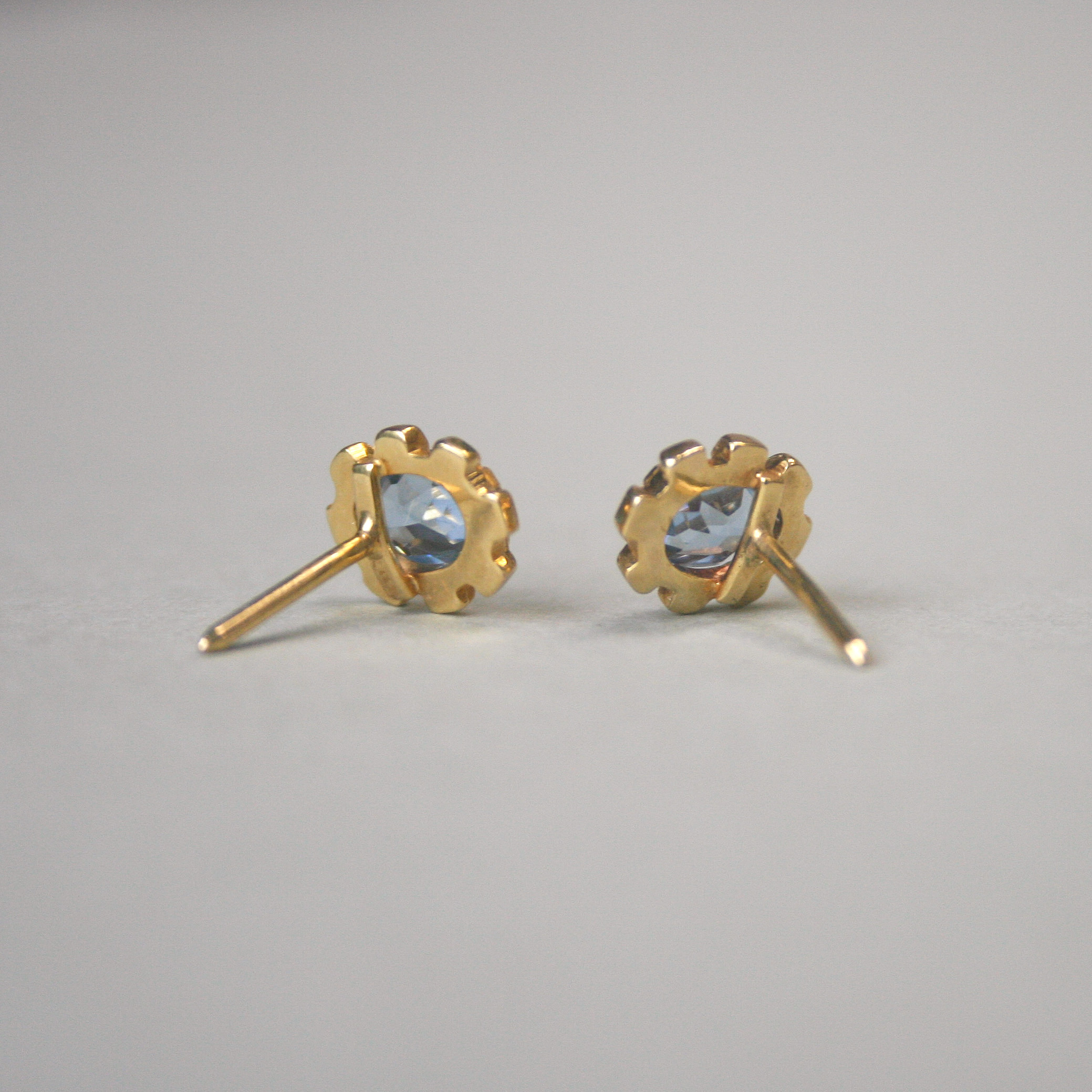 Aesthetic pair of 9ct gold light blue topaz earrings