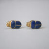 A beautifully made pair of 18ct gold earrings that nod to Byzantine influences. Each earring is set with a rich and vibrant berry hue garnet that measures 6 mm x 5 mm. With sweet bead details and post and butterfly scroll fittings. An aesthetic and carefully considered pair of visually pleasing 18ct gold earrings.