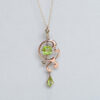 Antique Art Nouveau 9ct gold peridot and seed pearl foliate drop pendant