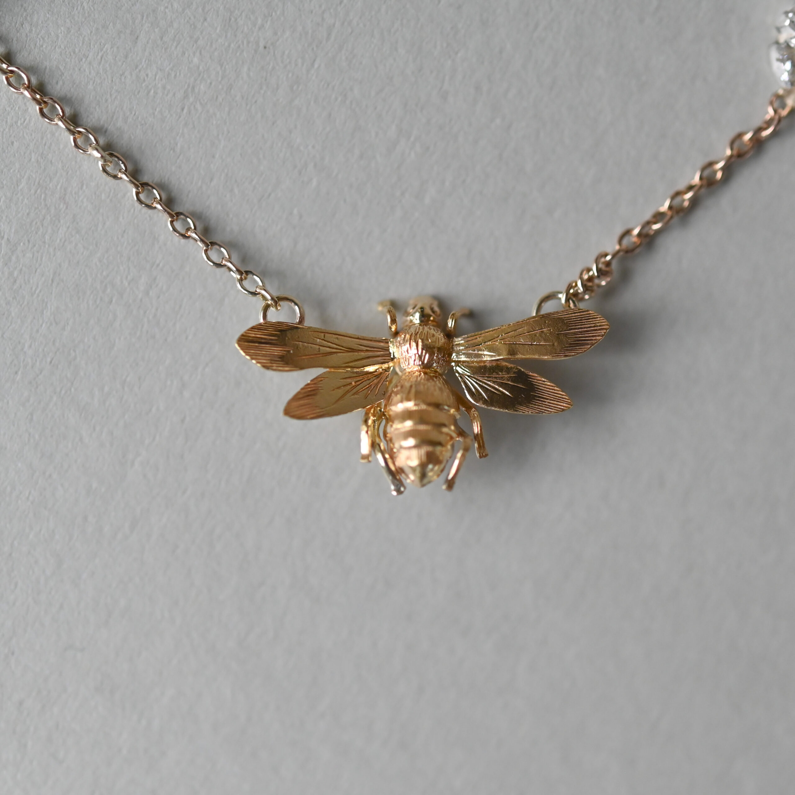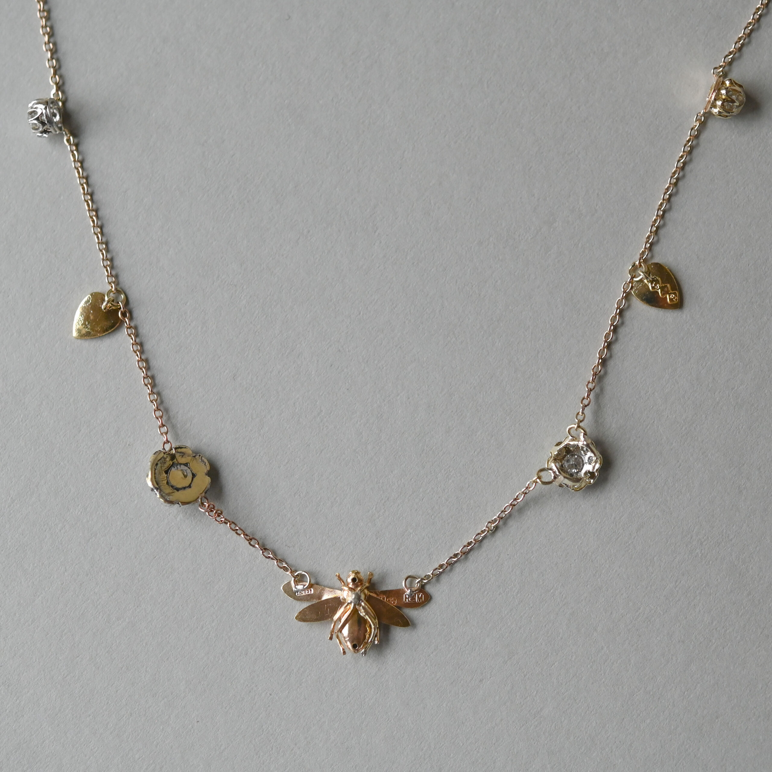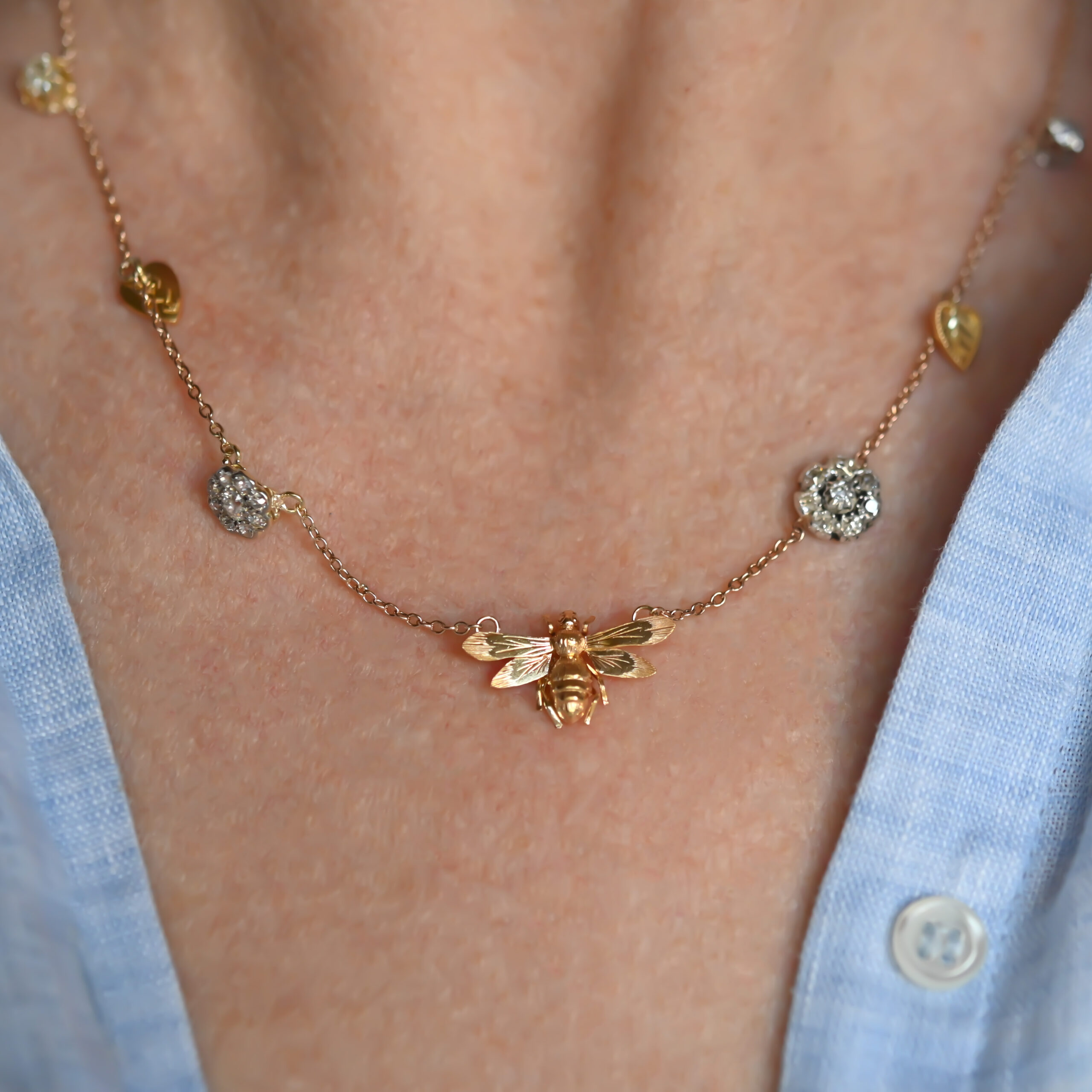 Antique ‘honeypie’ bee and diamond charm conversion necklace