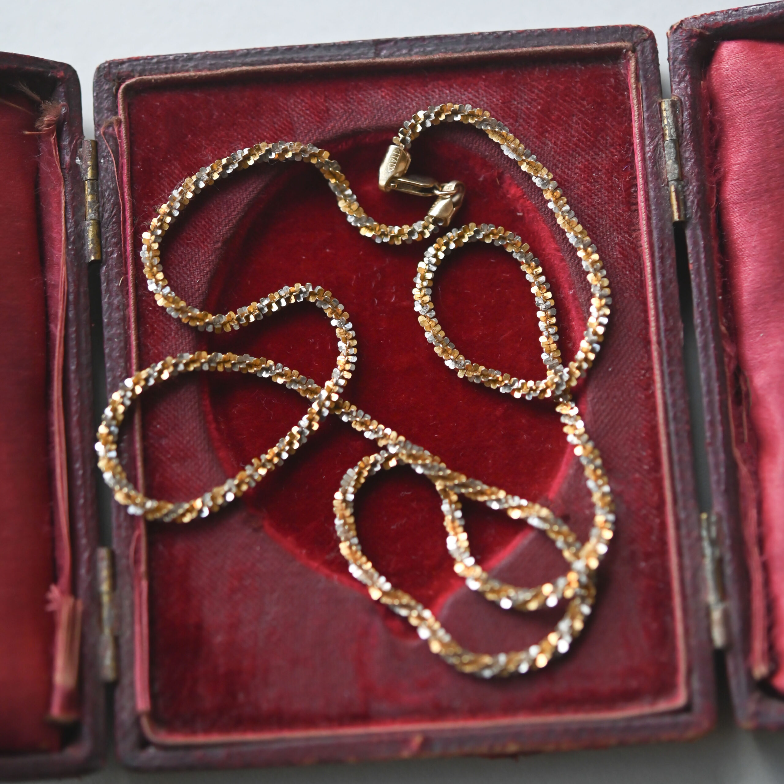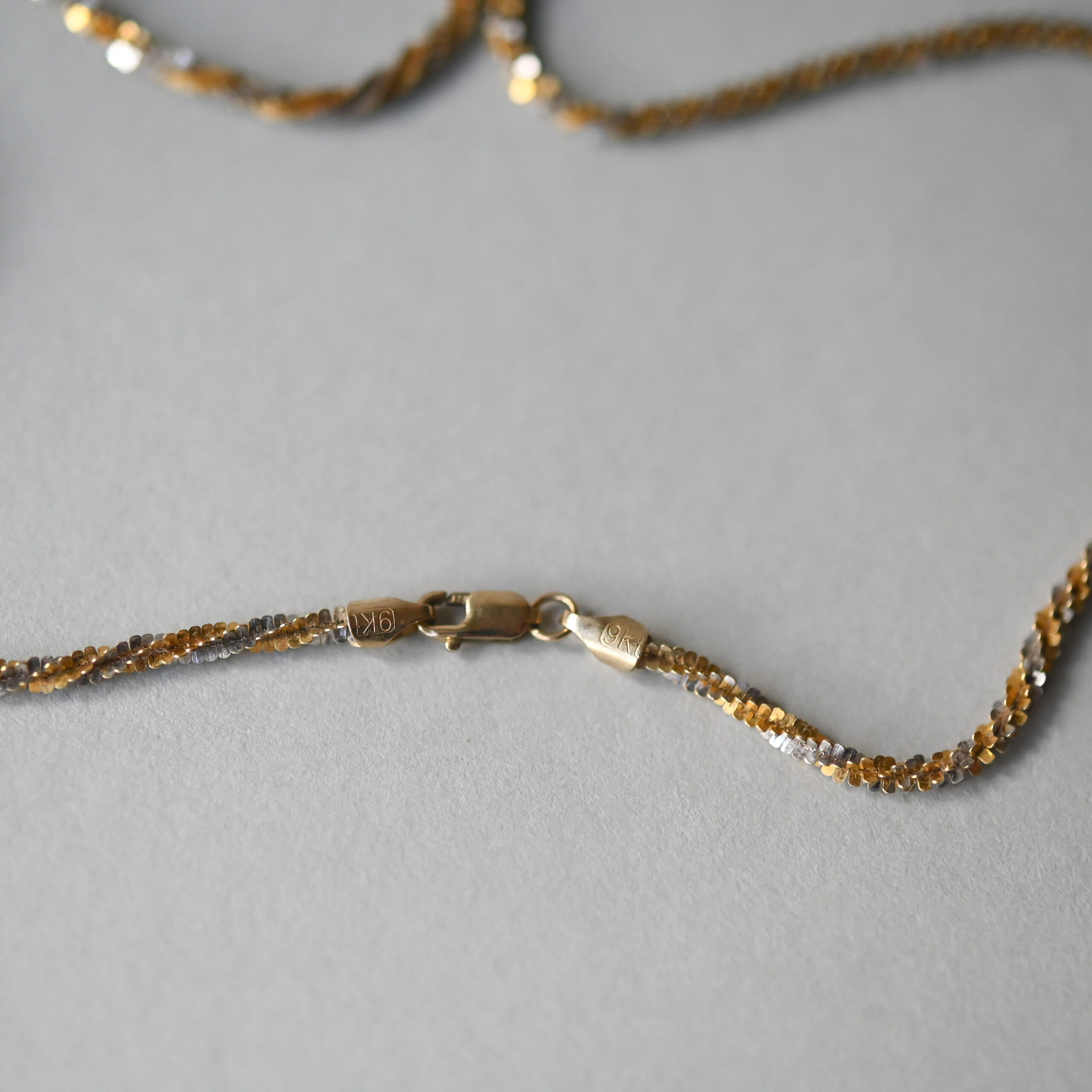 Contemporary 9ct white and yellow gold fancy shimmering chain necklace