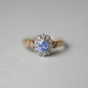 A cutie antique necklace claw set with a pastel, cornflower blue sapphire. The sapphire is set in 15ct yellow gold and measures 5 mm, totalling an estimated 0.75 carats. Suspended from a fine 9ct gold pendant chain with spring clasp. The sapphire is in its original setting and was part of an Art Deco piece. The chain dates to the mid 20th century. Please note the other necklaces shown are for demonstration purposes. A pretty conversion necklace lovingly made from antique and vintage components.