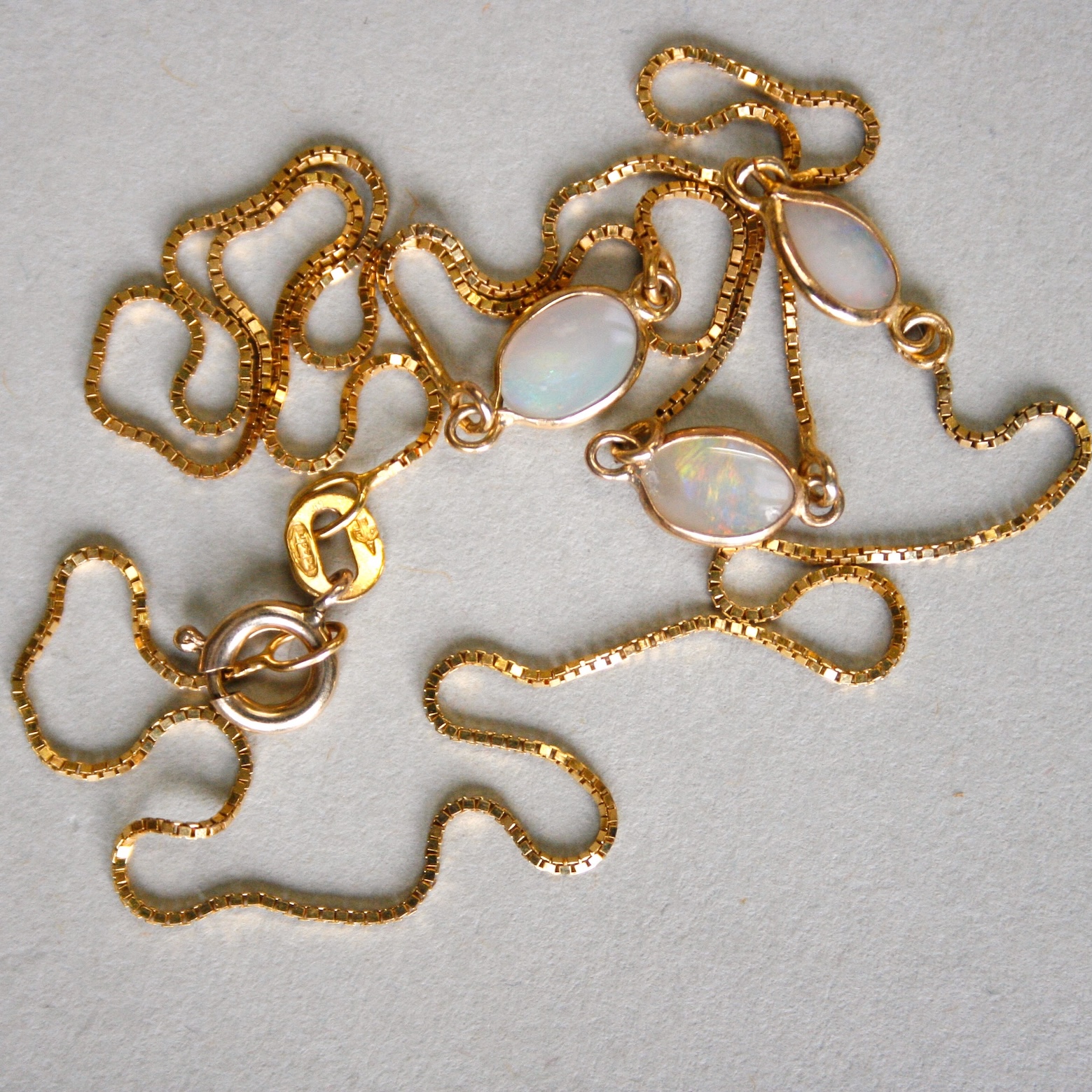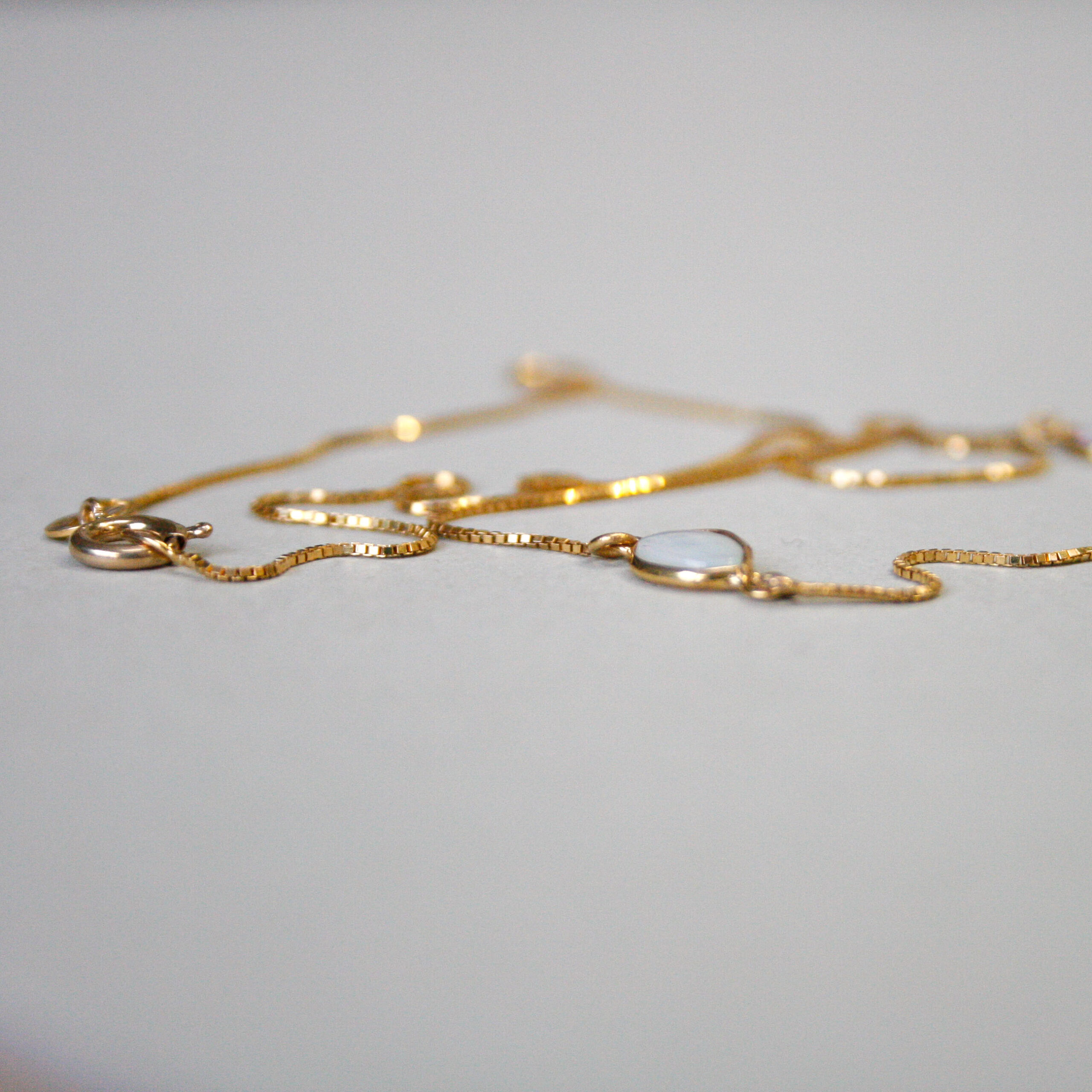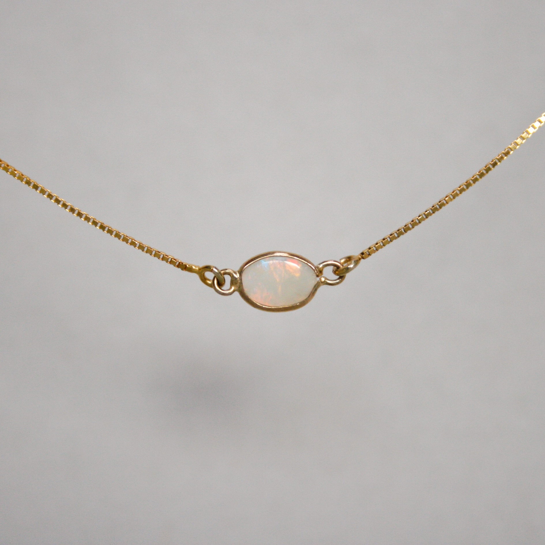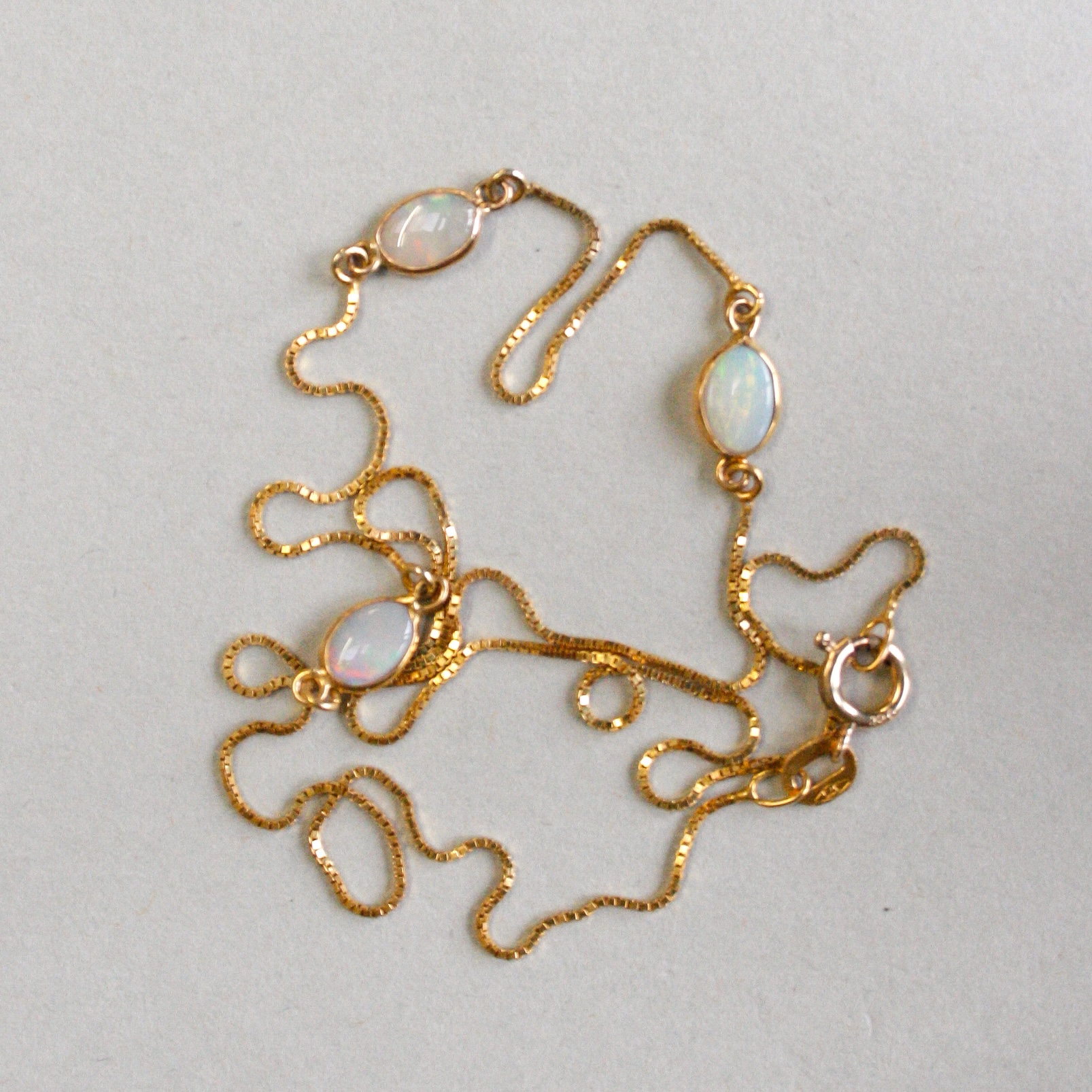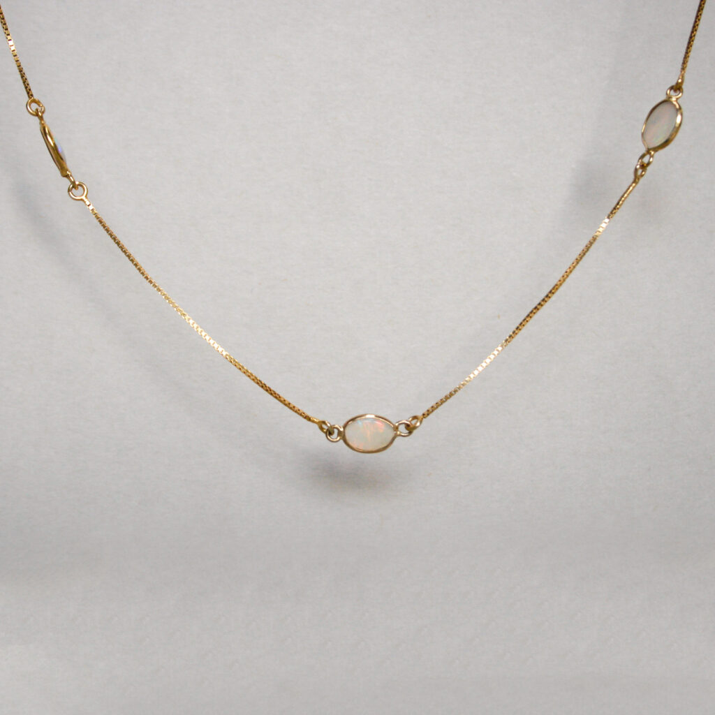 Dainty 9ct opal spectacle set station necklace