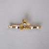 A fine Victorian 15ct gold locket set with split pearls. This beautiful pendant is designed as a series of overlapping bands, interspersed with 2.5 mm pearls and a central 5 mm pearl. The pearls are creamy white with pinkish grey overtones. With glazed compartment to the back. Please note the chain shown is for demonstration purposes.