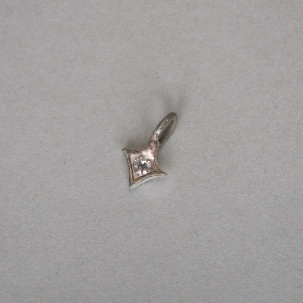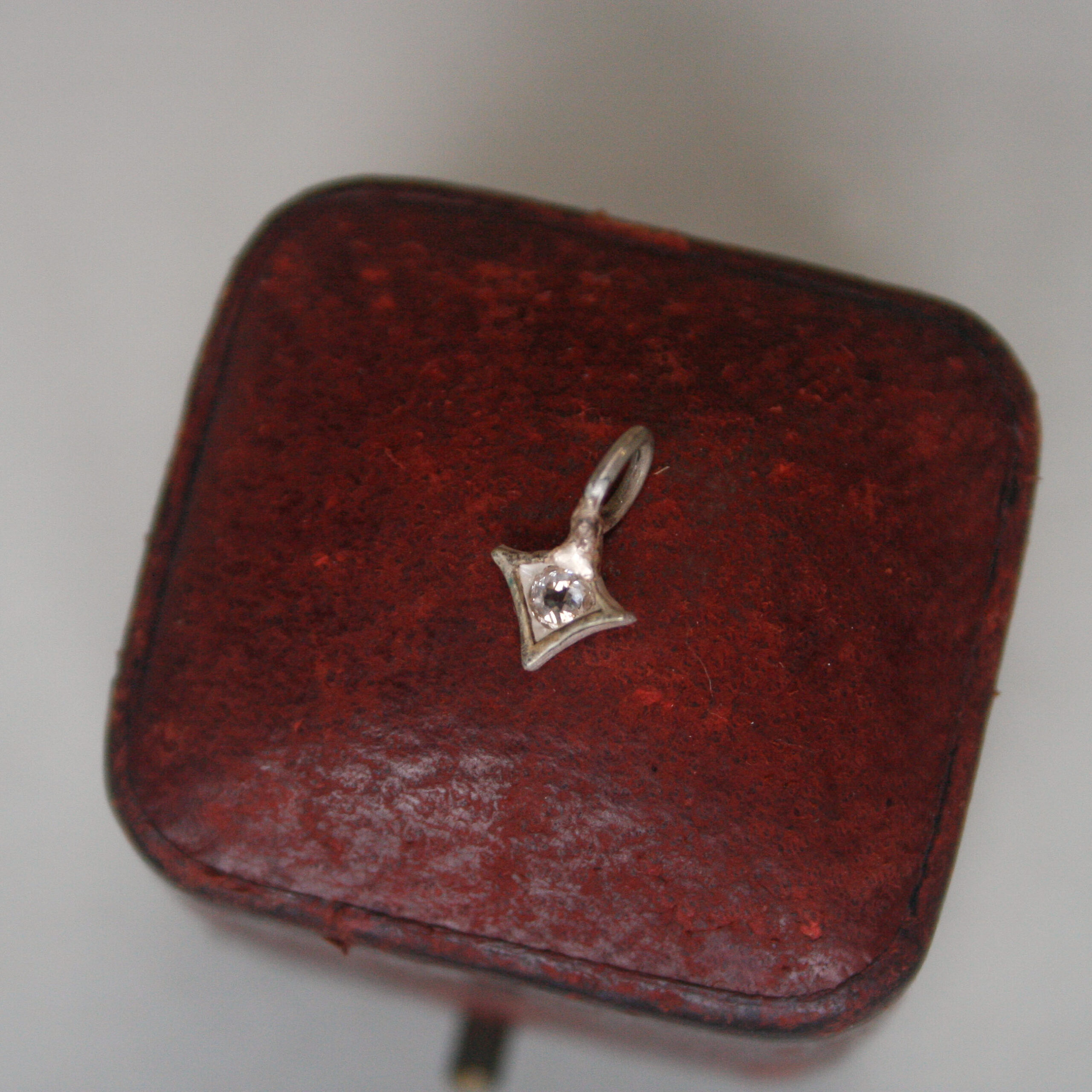 A tiny and very sweet antique Victorian four point star charm. Set with a mini old cut diamond. This piece was from a larger Victorian silver brooch and has been recently loving converted into a charm with a new integral bail. Please note the box and other mini antique charms shown are for size comparison and demonstration purposes, they are not included in this sale.