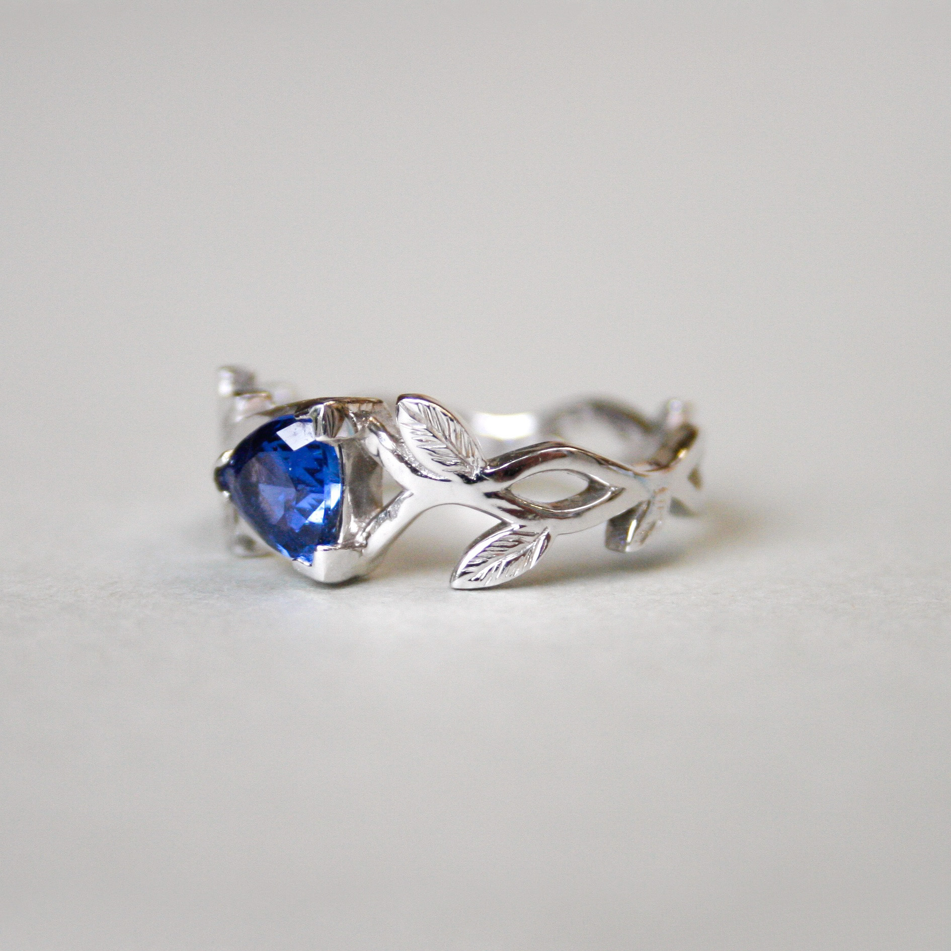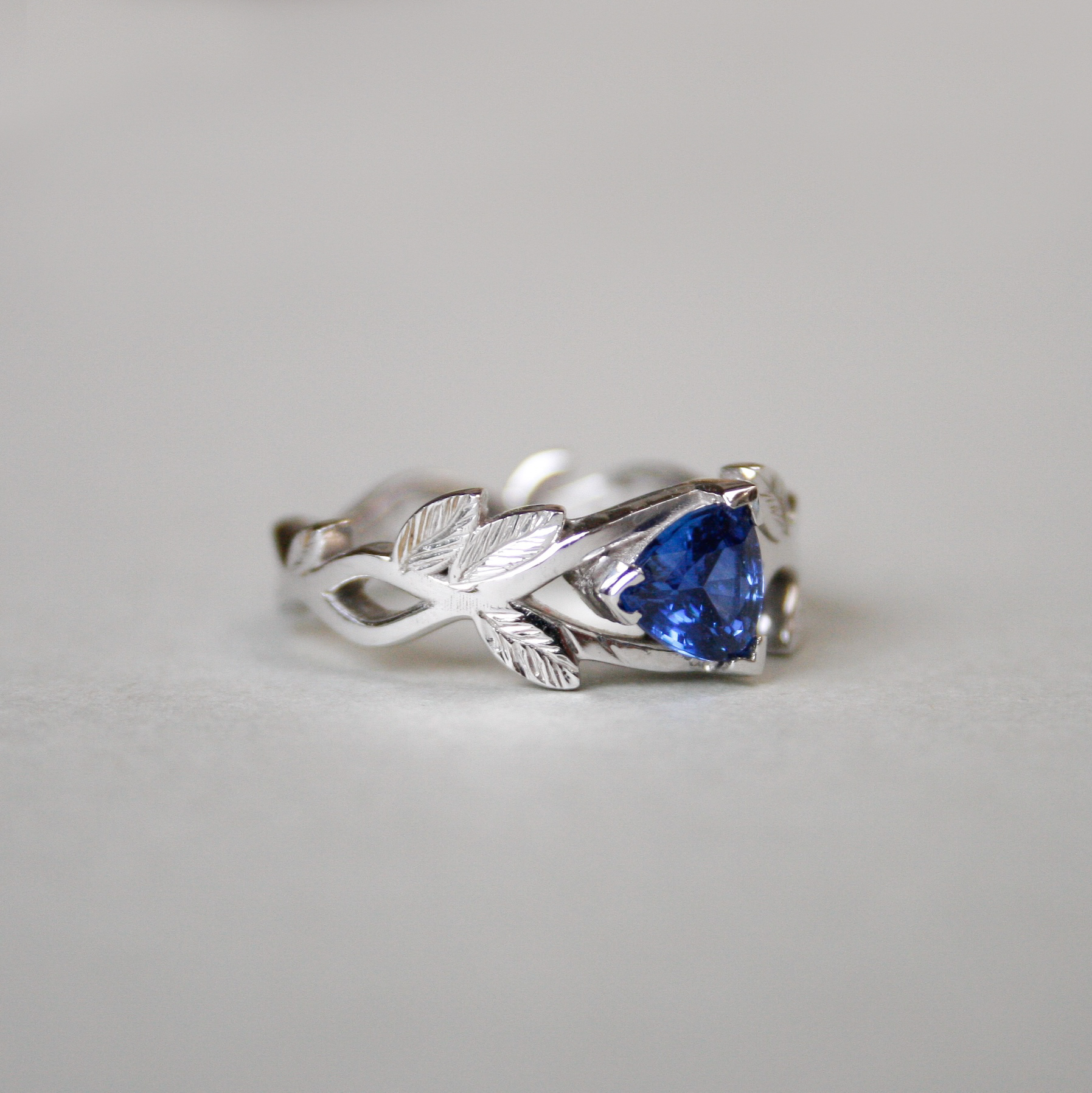 Aesthetic 14ct white gold iolite leaf ringAesthetic 14ct white gold iolite leaf ring