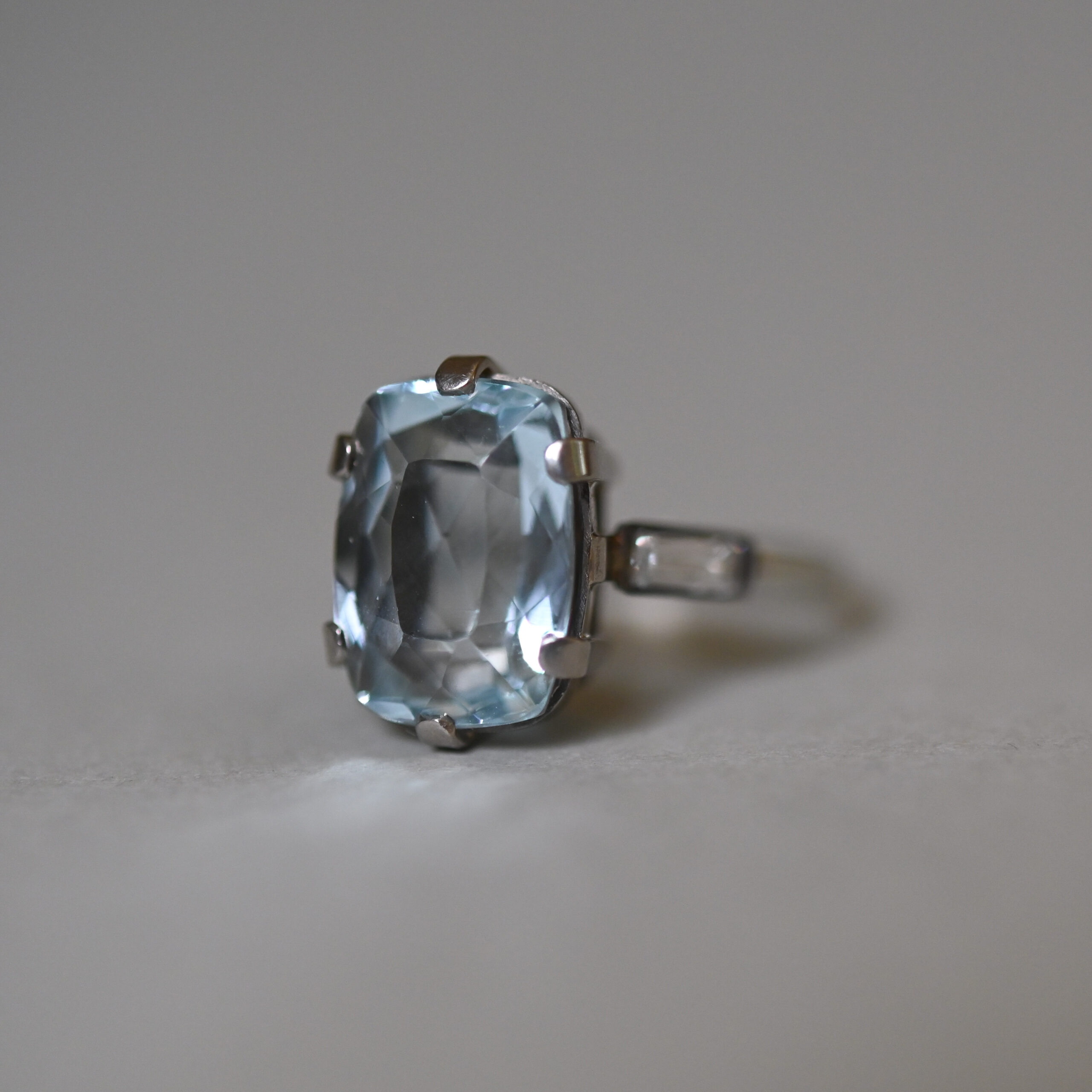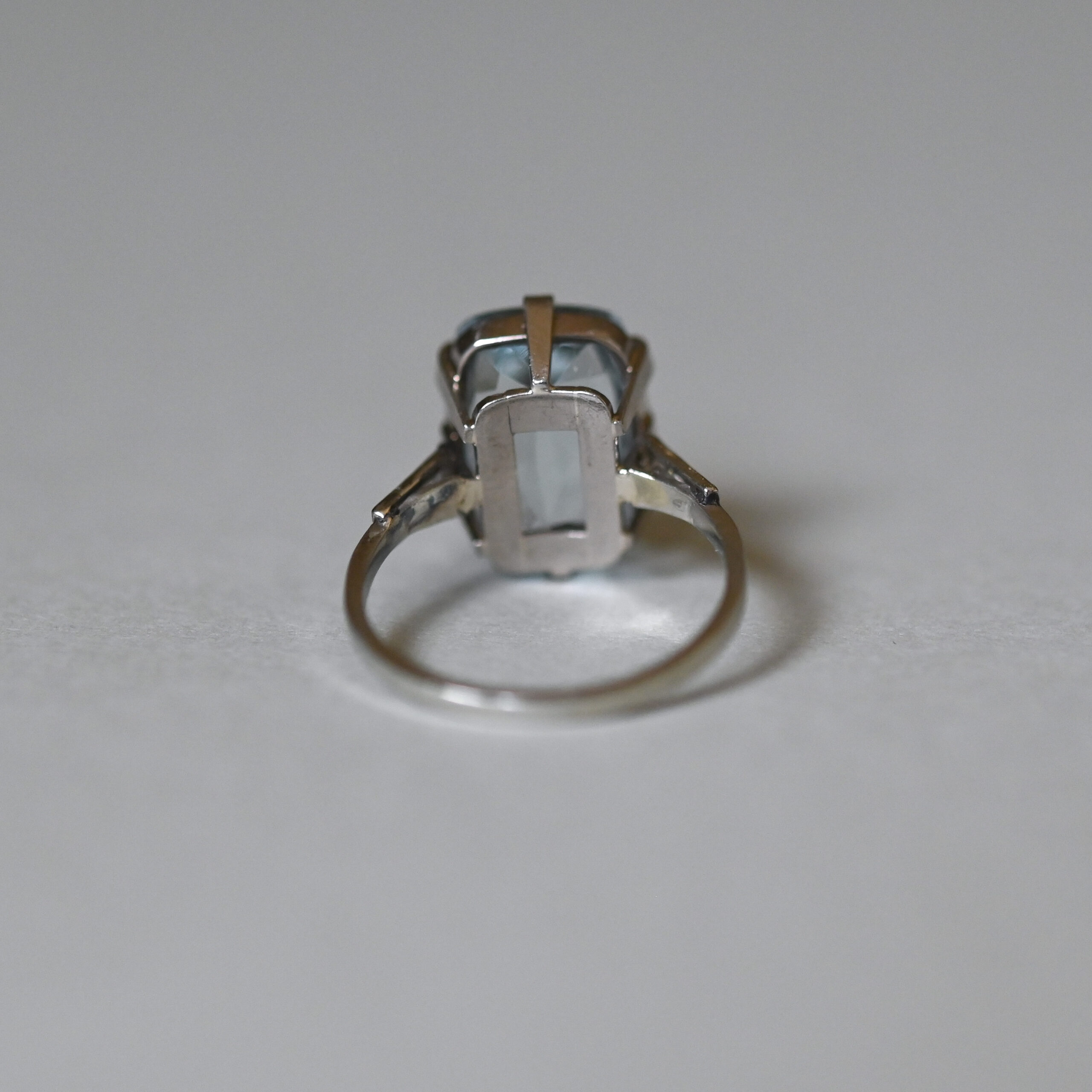 Art Deco 18ct white gold topaz and baguette cut diamond ring, c.1930s