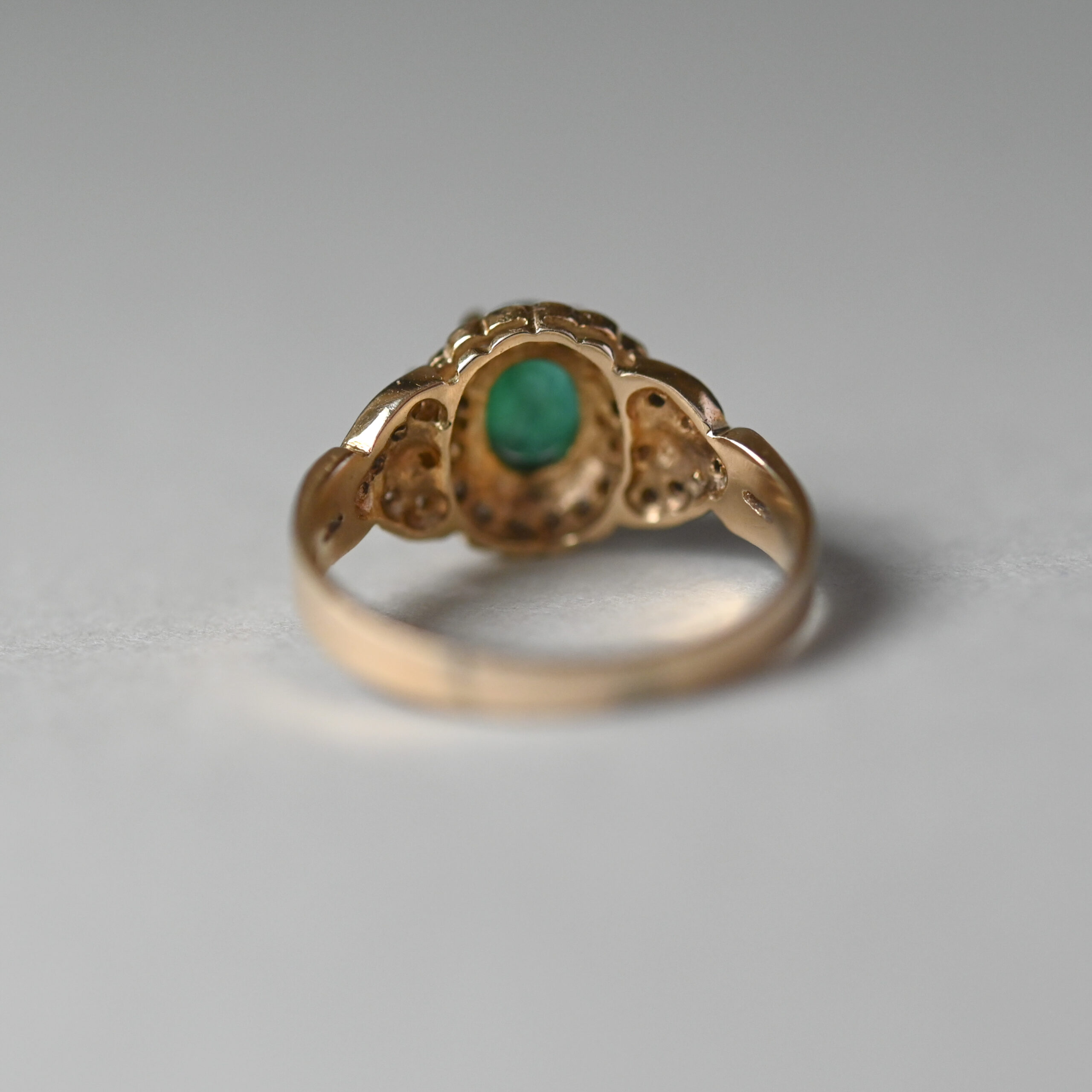 Classic 14ct gold emerald and diamond tiered cluster ring