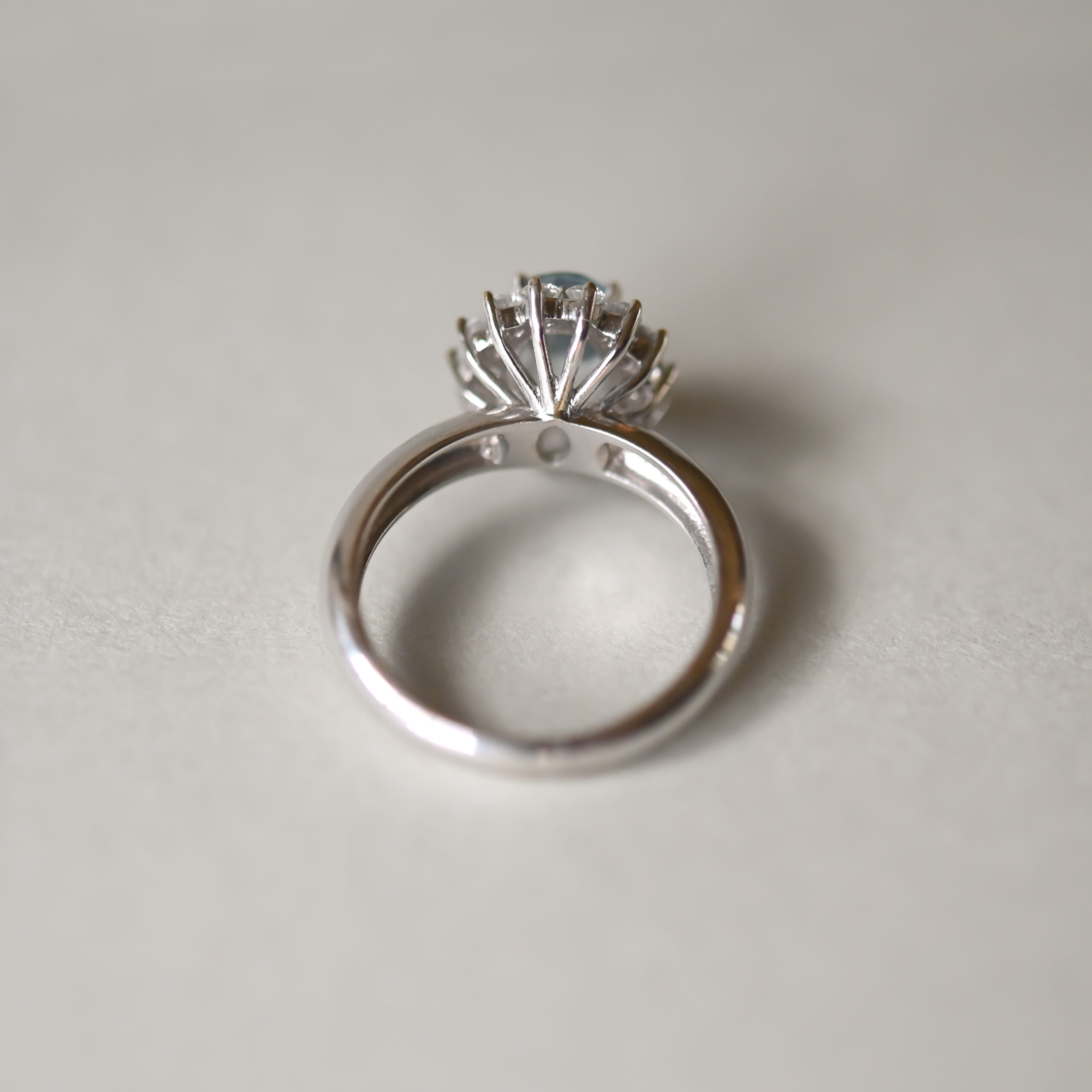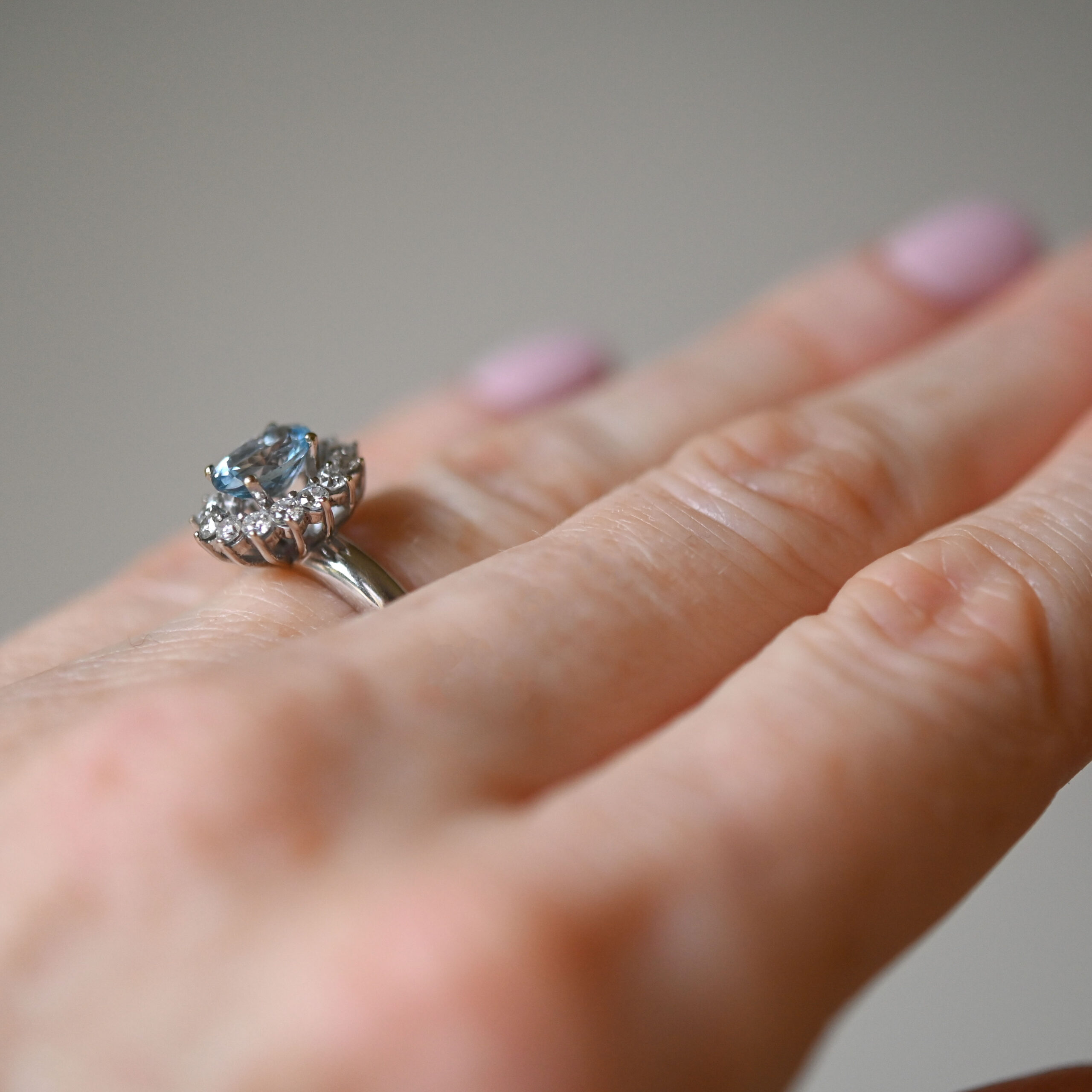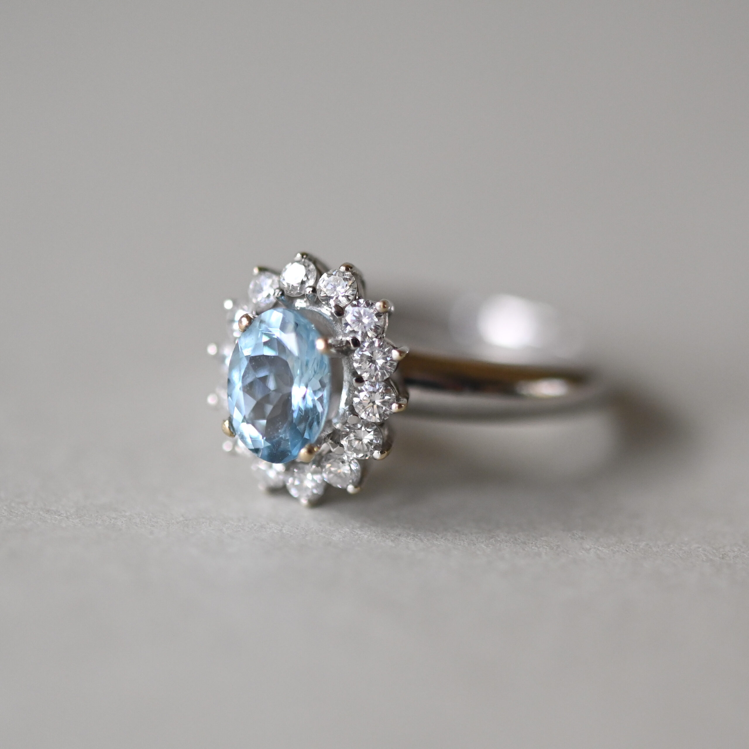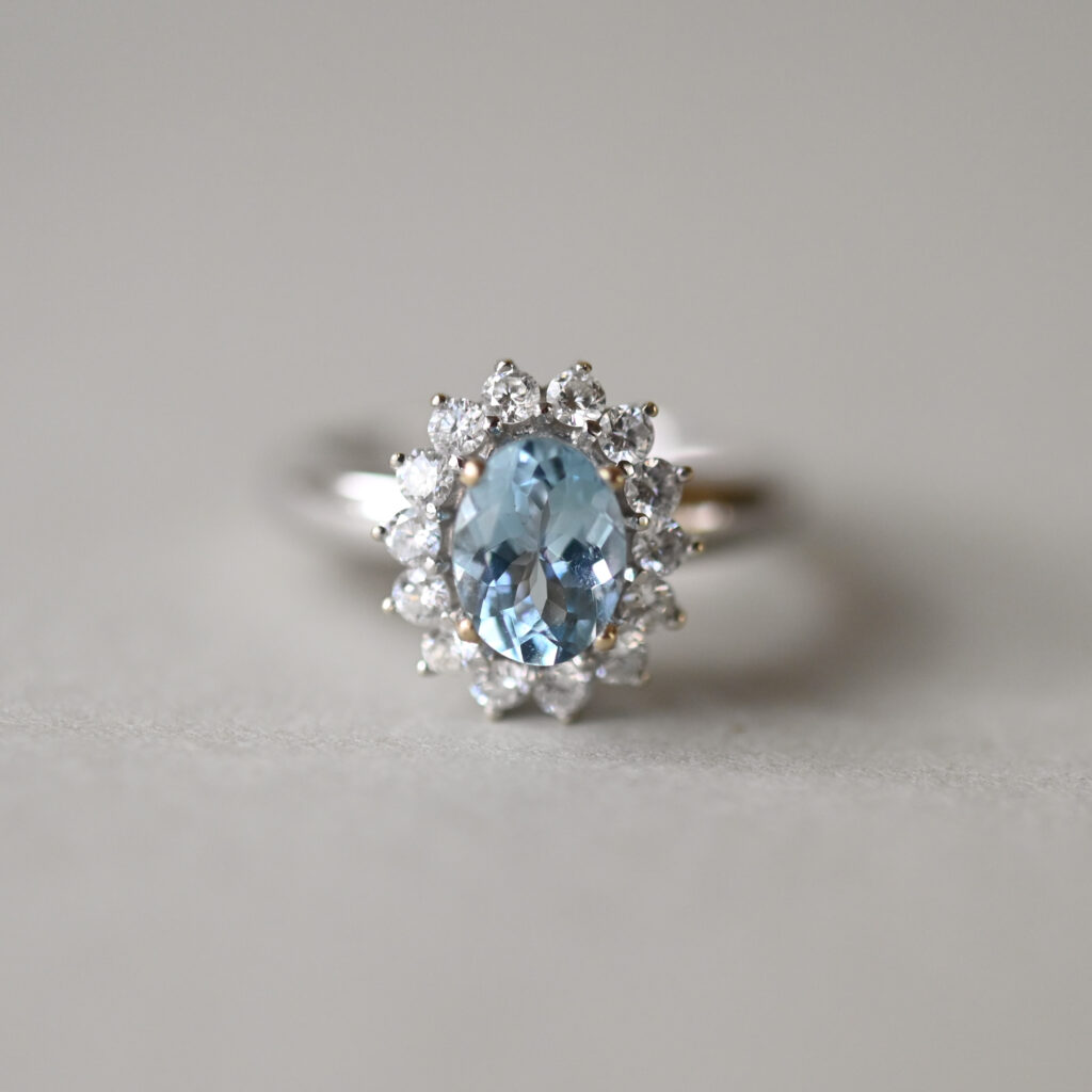 Classic 18ct white gold aquamarine and diamond cluster ringClassic 18ct white gold aquamarine and diamond cluster ring