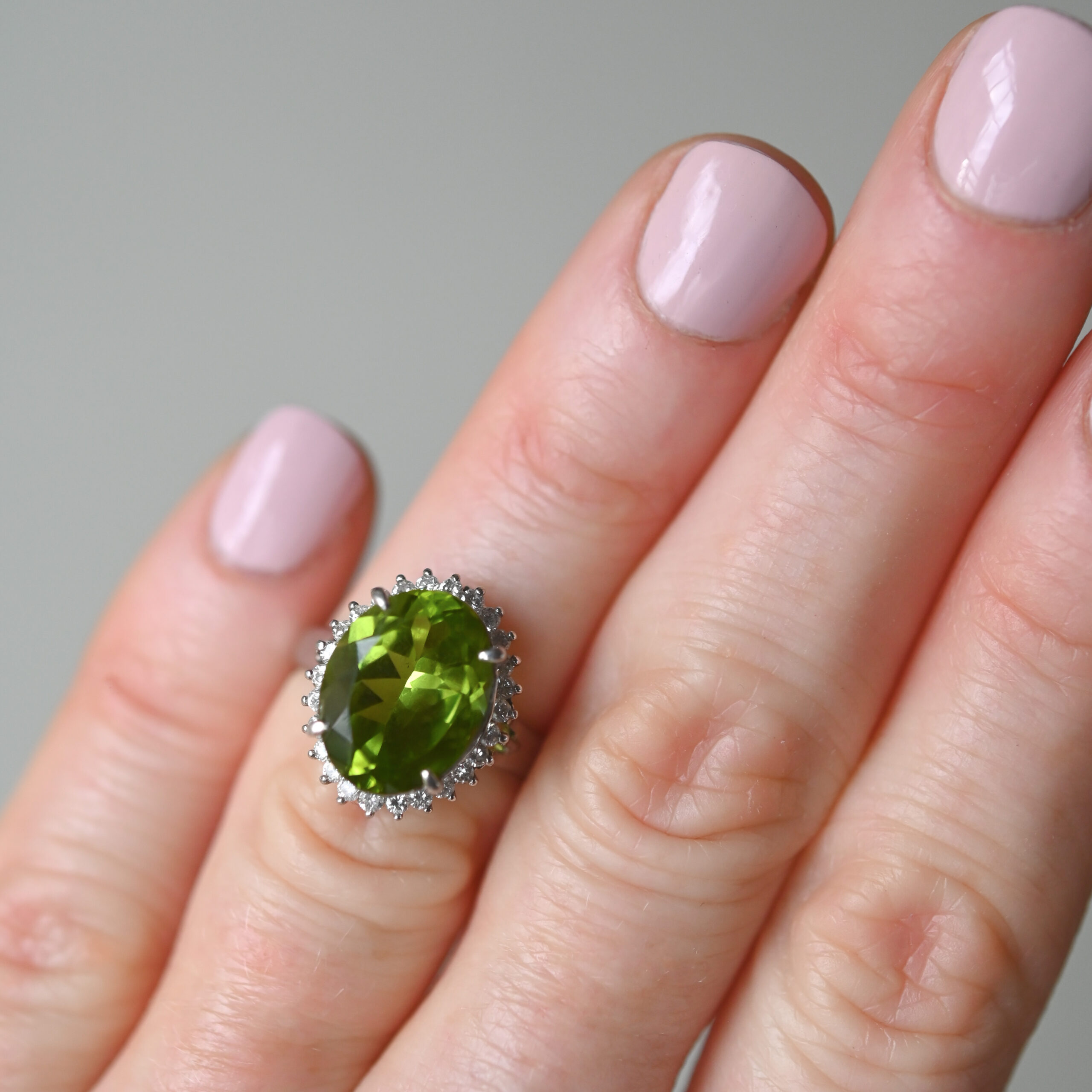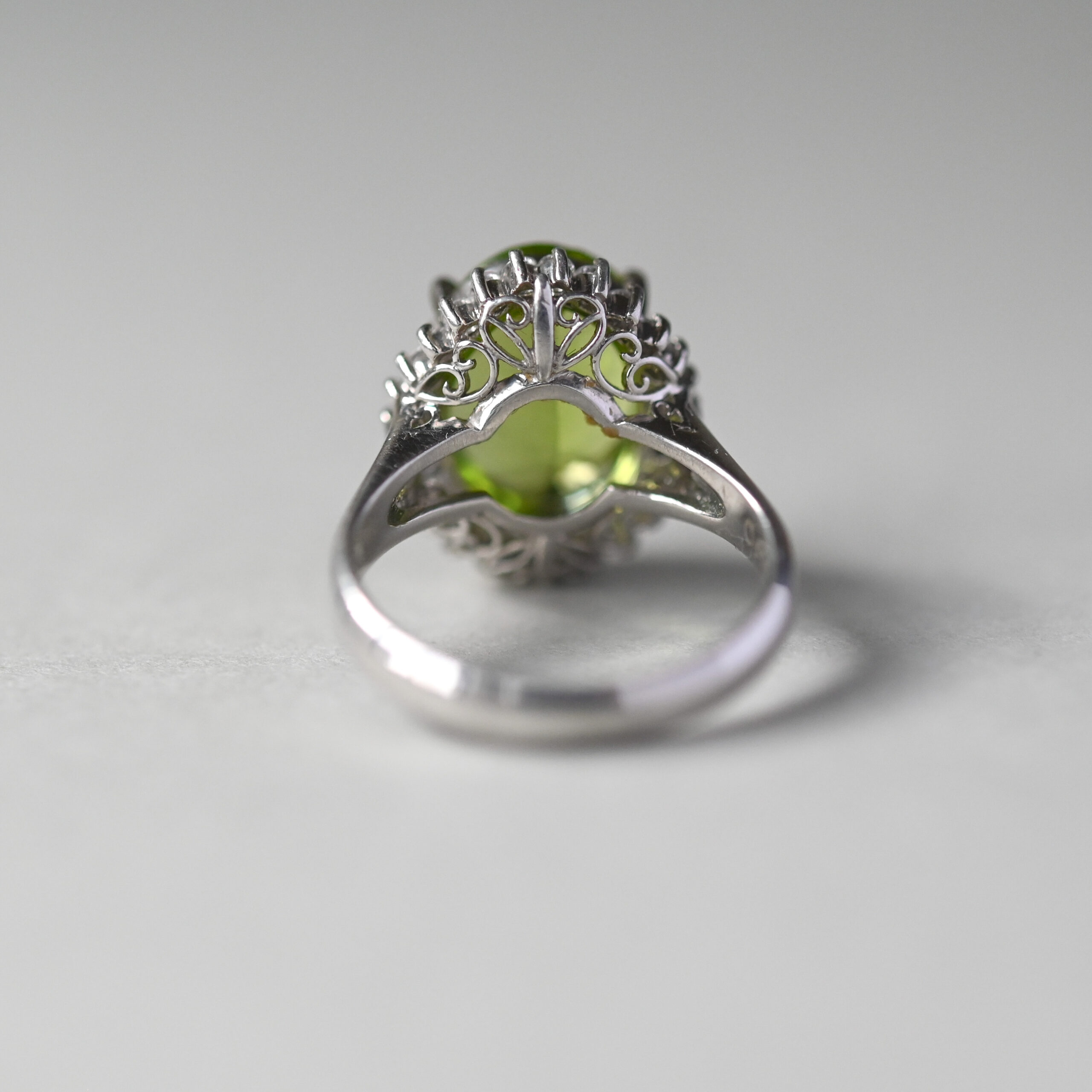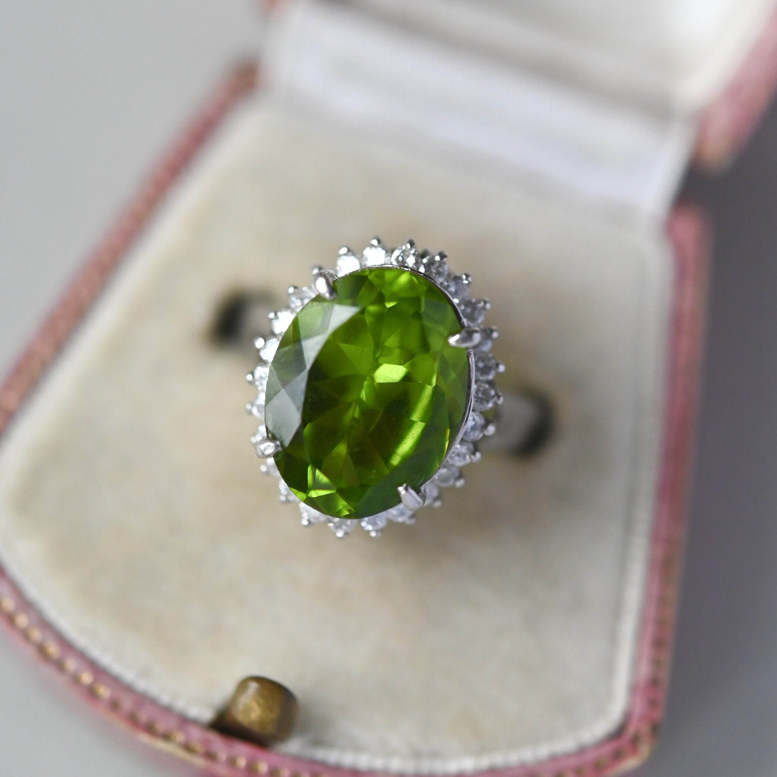 Classic 5.29 carat peridot and diamond platinum cluster ringClassic 5.29 carat peridot and diamond platinum cluster ring