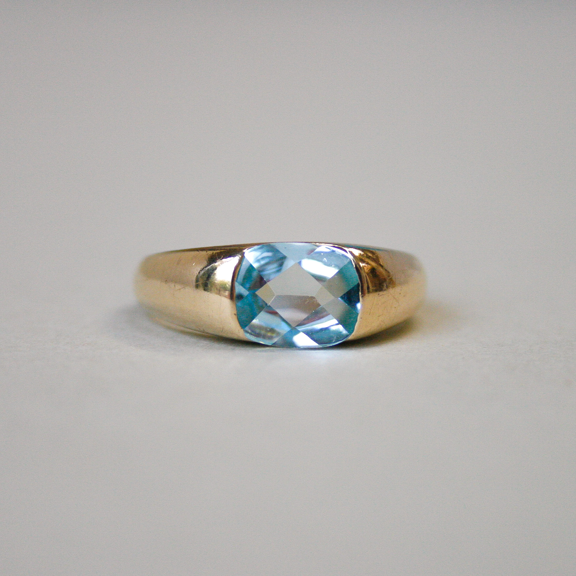 Contemporary 9ct gold facetted topaz band ring